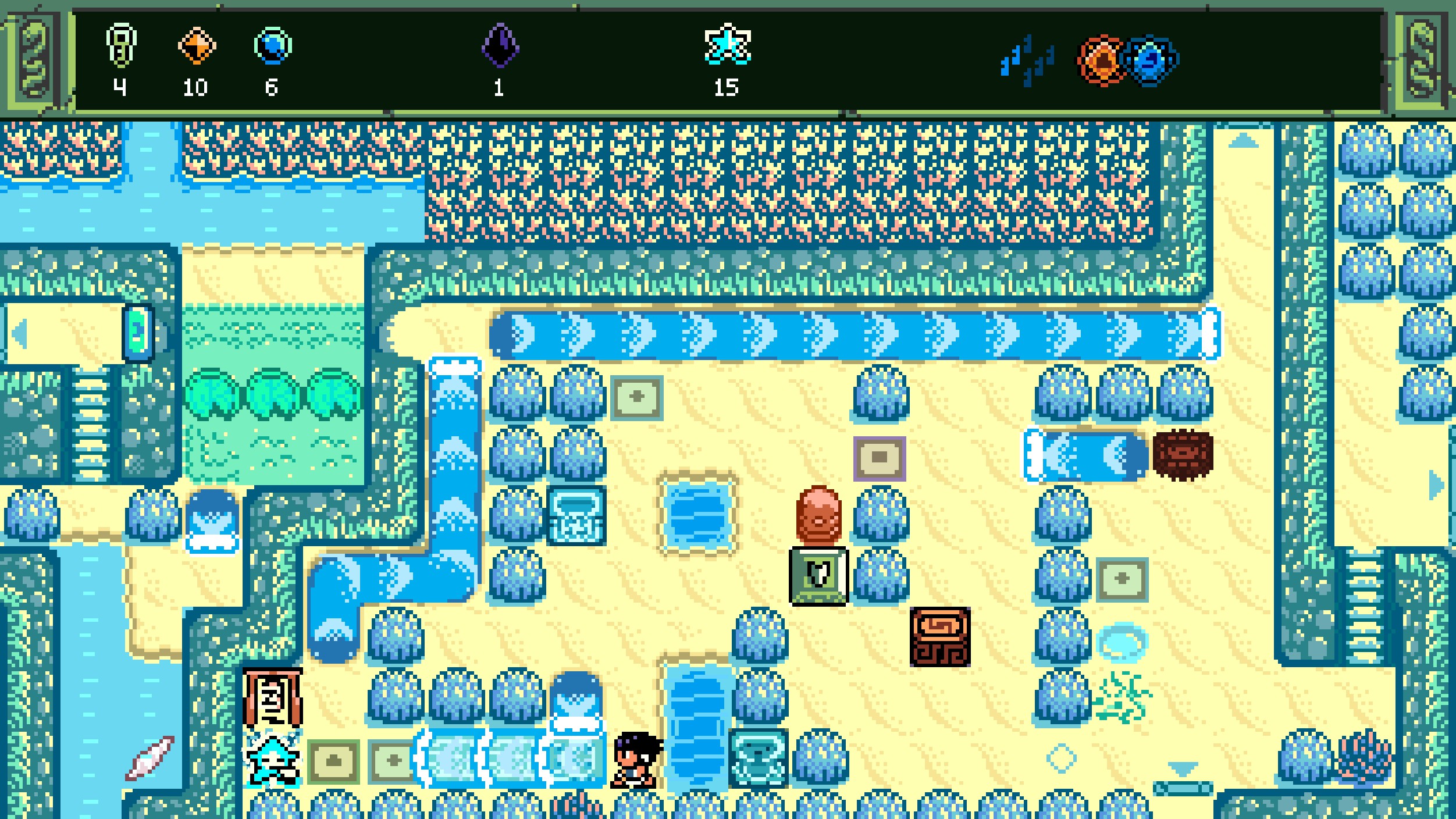 前面留了一个伏笔,说是我买了两个推箱子游戏,另一个其实就是这个。当时摆在我面前的选项其实还有《麦克斯韦解谜妖》和《void stranger》。自然,我是被海天岛传说清新脱俗的美术色彩吸引了,加之我还没有自信称自己是核心硬核玩家(因为听说麦克斯韦妖的难度非常高,而我是baba is you的进阶关卡都搞不定的那种),那就你来试试水吧!