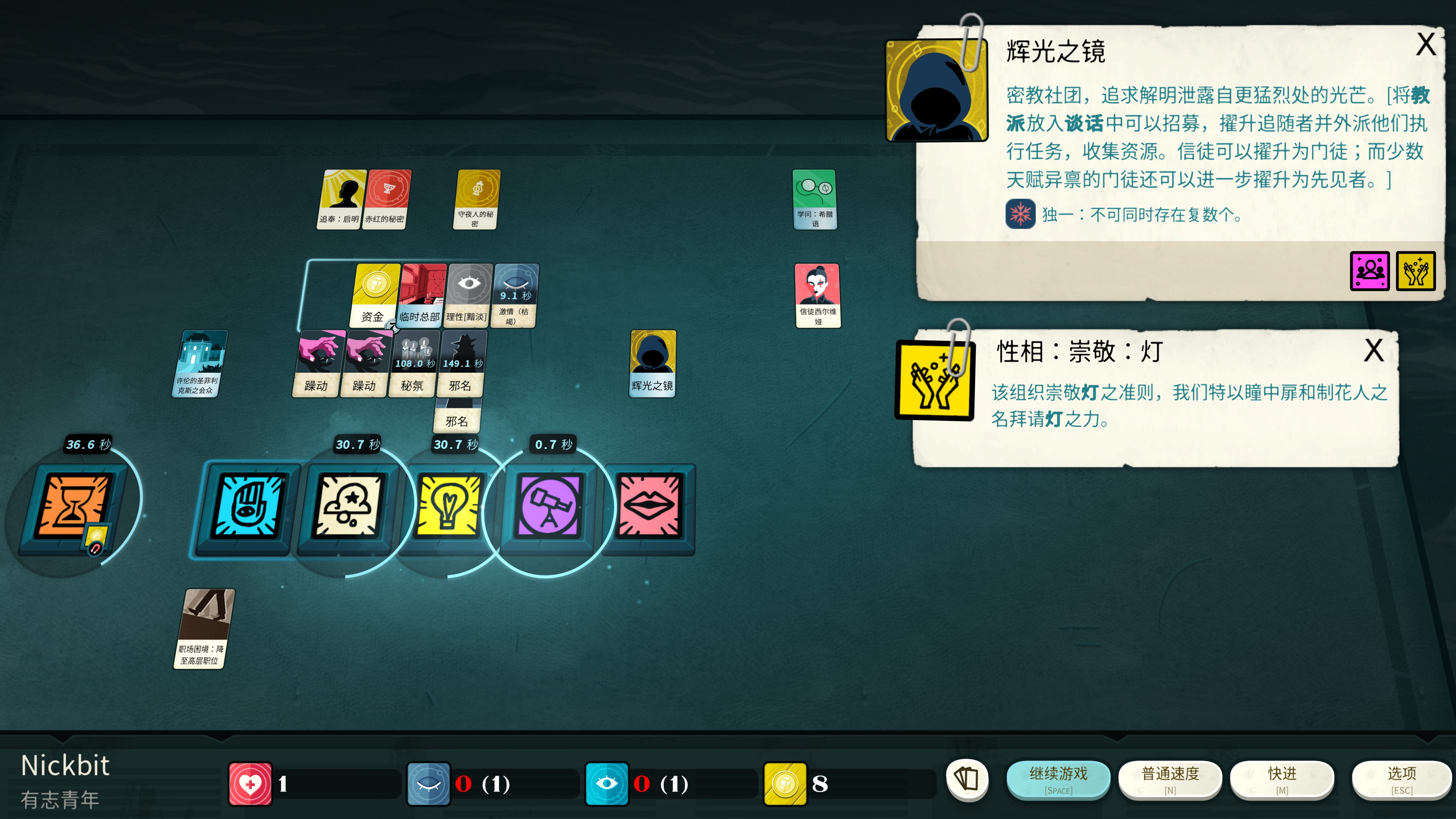 很巧,我在很久以前玩过一把这个机制独特到自成一派的模拟游戏,但是密教的上手成本属实非常的高,第一把属实是没玩明白就弃坑了。当我再次捡起来的时候我决定对照着wiki玩下去,而完全没意识到两个月后就会有一款玩法相似的游戏火遍中文社区。