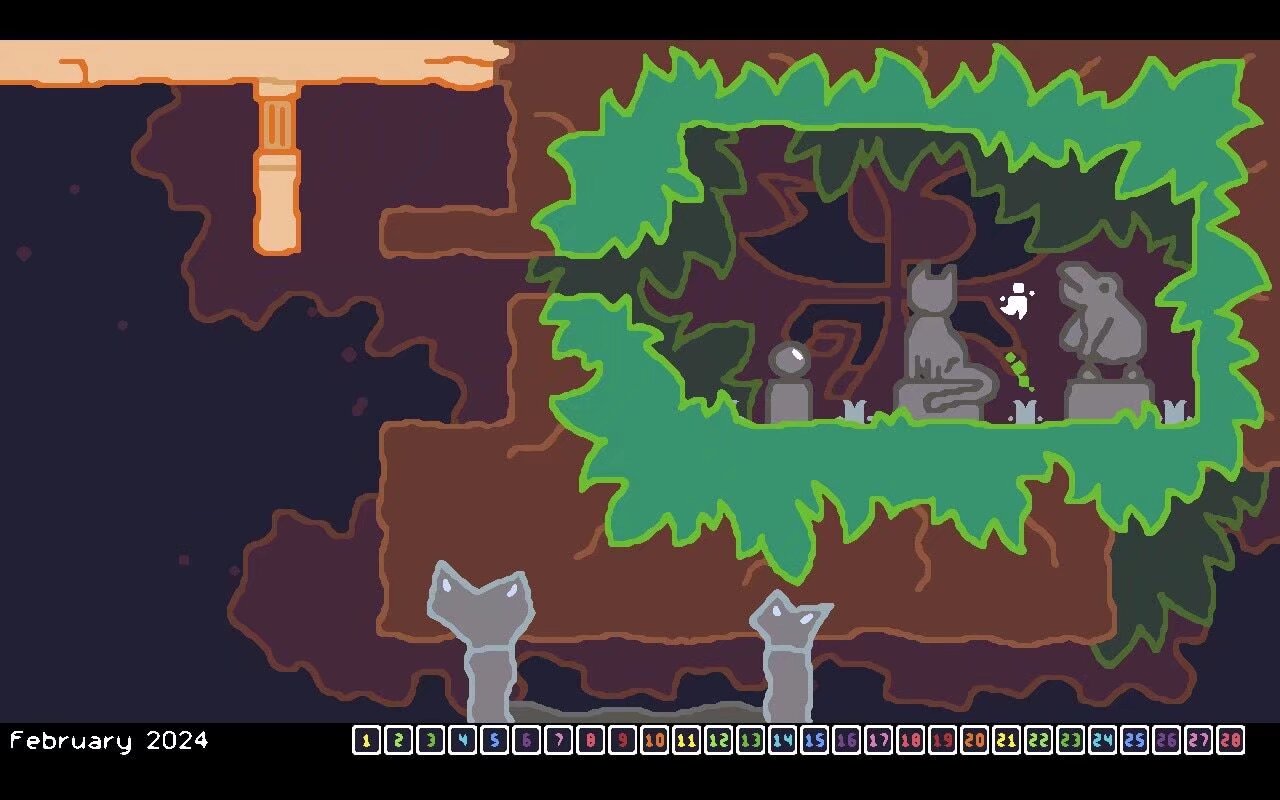 我一度怀疑游戏的物理逻辑有没有好好实现设计的机制和规则,因此在某些关卡一直试图微操“卡bug”,事实就是在这个足够低分辨率的网格下,作者确实做到了没有捣乱的空间。看吧,小体量也是有小体量的好处,甚至在没有bug上也是。所以最终给Öoo一个11/10,10分是玩法本身,1分给设计哲学。